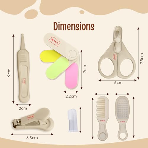 Our 7 in1 baby grooming kit includes baby nail cutter, rounded safety baby nail scissors, Baby nail filer, baby brush, baby comb. Fully meet the baby’s daily needs