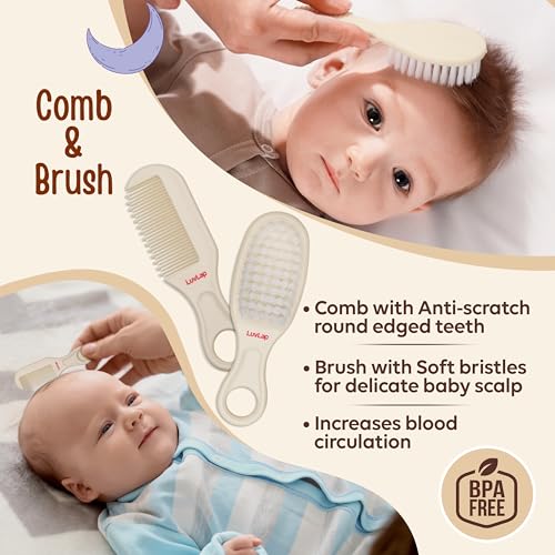 This complete new born oral, nail and hair care set includes: One Finger Brush to clean Baby Tongue & Gum, Hair Brush with Soft Bristles to comb Delicate baby Scalp, Comb with Anti-Scratch Round Edged Comb Teeth, Easy Grip High Quality Nail Scissor, Nail Clipper to shape and polish baby nails, Tweezer to remove nasal congestion and Nail Filer to Smoothen the nail edges.