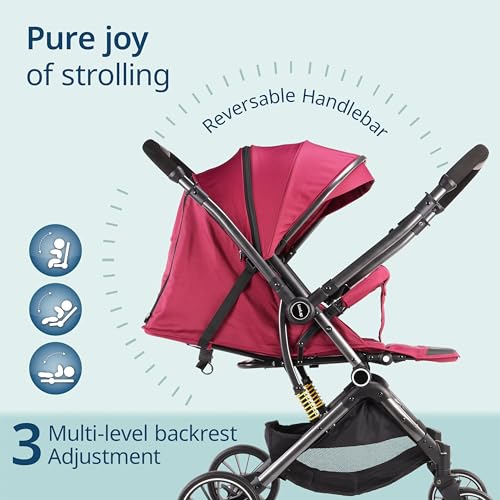 Extra spacious stroller with heavy duty wheels – Best choice for outdoor use. There is reversible handle bar so that you can always keep an eye on your baby