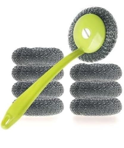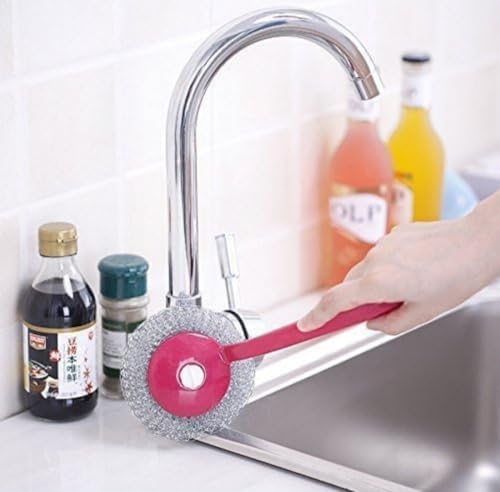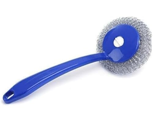★Package Included: 1 scrub pad with plastic handle ★Great Design with Hand: The plastic handle of the cleaning brush provides a comfortable grip. The brush has a hanging hole for hanging to keep it dry and clean during daily use. ★Sturdy: Steel Scouring Pad is made of 401 material, the steel wire has the ability to resist oxidation, soft and elastic, not easy to rust and no slag, long-term use will not be damaged ★Effective cleaning: the Steel Wire Scourers is utensils Weave tightly, the steel wire is stable and not easy to fall off, the cleaning process is very stable, and the cleaning effect is very obvious for hard-to-clean cookware