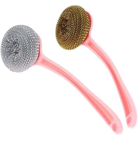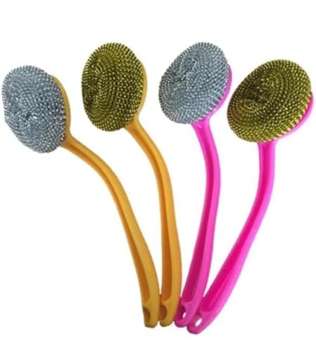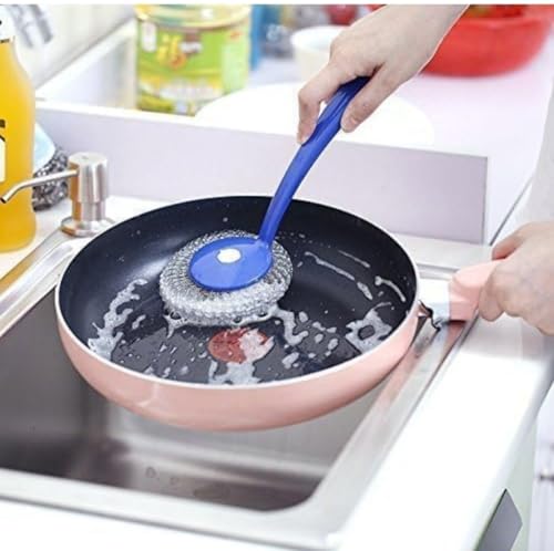 Madurai Famous Seller’s Wire Ball Brush with Handle Hand Protection Brush with Plastic Handle Stainless Steel Scrubber, Home Kitchen Dish,Bowl, Pan Cleaner Brush Scrubber.