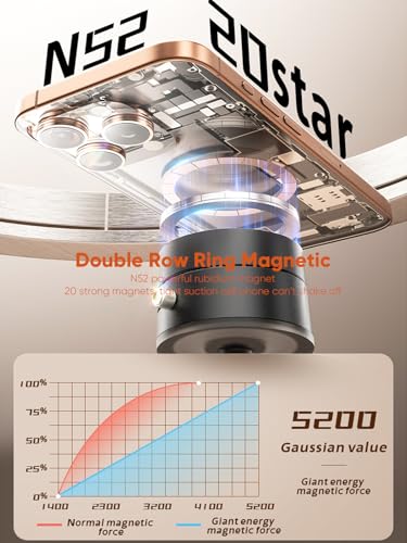 Equipped with double-row annular strong magnetic N52 magnets, providing 20 strong magnetic suction points to securely hold your mobile phone without shaking off. Whether using magnetic suction or true suction, it provides stable and reliable support for your needs