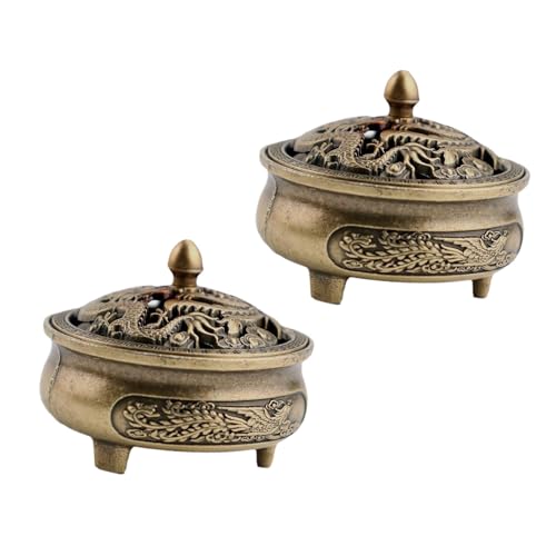 Dragon And Phoenix Carved Pattern‘Mini Alloy Incense Burner With Round Shape, Atmospheric Retro Styled, With Chinese Dragon And Phoenix Carving Design, Fine Workmanship