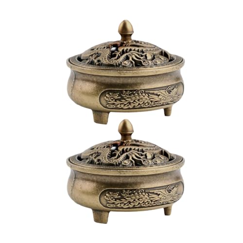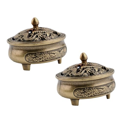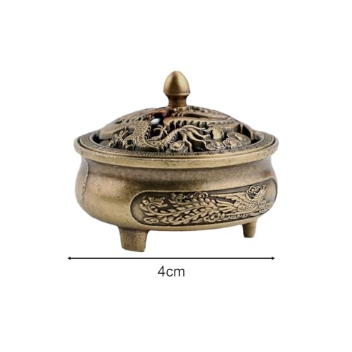 Dragon And Phoenix Carved Pattern‘Mini Alloy Incense Burner With Round Shape, Atmospheric Retro Styled, With Chinese Dragon And Phoenix Carving Design, Fine Workmanship