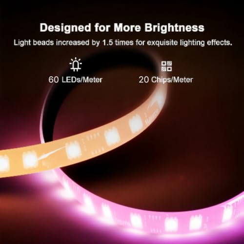 High-Density Light Strip: With 60 LEDs/m and a brightness of 460 lumens/m, the high-density light strip cooperates with our Sync Box to provide a brighter light in room.