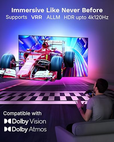 Dolby support: Dolby Atmos and Dolby Vision Supported, HDR support at 4K 120Hz for gaming. Compatible with PS5 and Xbox.