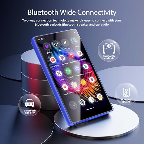 MP3 Player 128 GB with WiFi and Bluetooth, 5 Inch HIFI Music MP4 MP3 Player with Spotify Pandora, Amazon Music, Android Music MP3 Player for Children with Audible, Speaker, up to 256 GB (Blue)