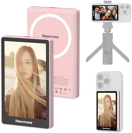 Newmowa Pink Magnetic Phone Vlog Selfie Monitor Screen, 1080P Wireless Recording, Using Phone Rear Camera for Selfie Vlog Live Stream TikTok, Compatible with iPhone(Support 4K 30fps Wired Recording)