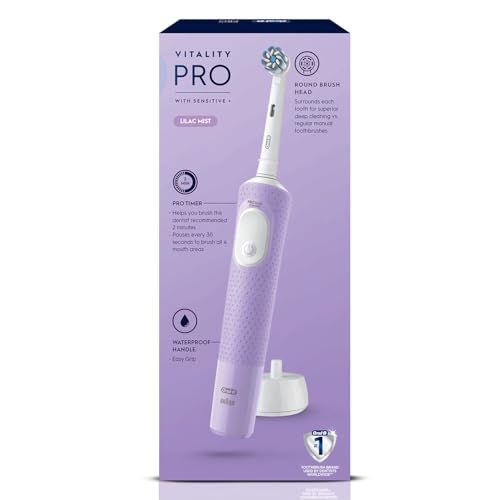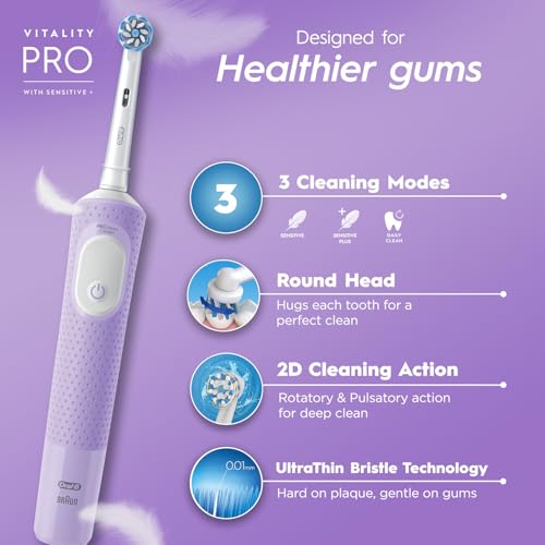 Oral B Vitality Pro with Sensitive Plus Rechargeable Electric Toothbrush for Adults, 3 Brushing Modes, 2 Min Timer, 2 Year Warranty by Oral-B, IPX7 Water Resistant (Lilac)
