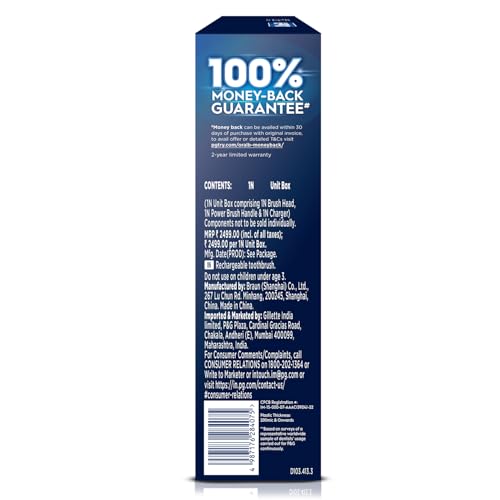 2 YEAR WARRANTY by Oral-B -This brush comes with a 2-year warranty by Oral-B and IXP7 WATERPROOF TECHNOLOGY providing you with peace of mind and assurance of our product’s durability and high standards.