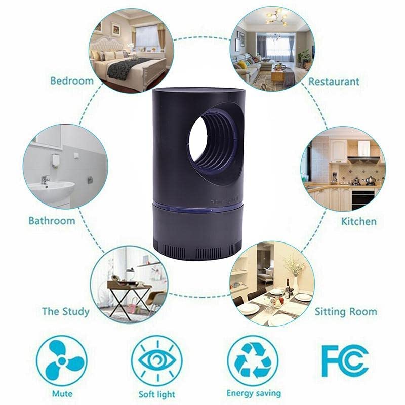 Safe for all : it traps mosquitoes, fruit fly, bug, gnat physically.Powerful suction: the suction power of the updated vortex fan is 2 times stronger than that of the ordinary fanWidespreaded Attracting Light: the high-power purple light has stronger light penetration and farther, which can attract more mosquitoes.Easy to Operate: Just one press than you can get it work.Easy Carrying: with a detachable carry handle that you can take it anywhere you like.Quiet: It is low noised when working so you and your love ones can have a good sleep with it.Safe for Wooden Building: no high-voltage electricity is used,so you don’t need to worry about catching a fire anymore when in your wooden house.