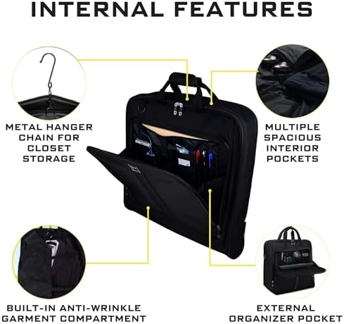 TRAVEL IN WORLD CLASS: Maximized storage capacity for an attractive combination closet and briefcase on the go. With a professional exterior look and an elegantly imprinted full interior lining, this is the best travel garment suitcase available today.