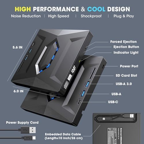 【High-Speed Data Transfer & Power Assurance】The USB 3.0 data cable equipped is an upgraded version of USB 2.0, offering speeds up to 10 times faster for a smoother reading and writing experience. This data cable features Type-A and Type-C 2 kinds of connectors, ensuring compatibility with both new and older computers without the need for an adapter. If your computer doesn’t supply enough power through a single data cable, simply connect the included power supply cord to a USB power adapter, power bank, or another USB port on your PC for additional power. (Note: The power cord is not a data cable and should not be used on its own.)