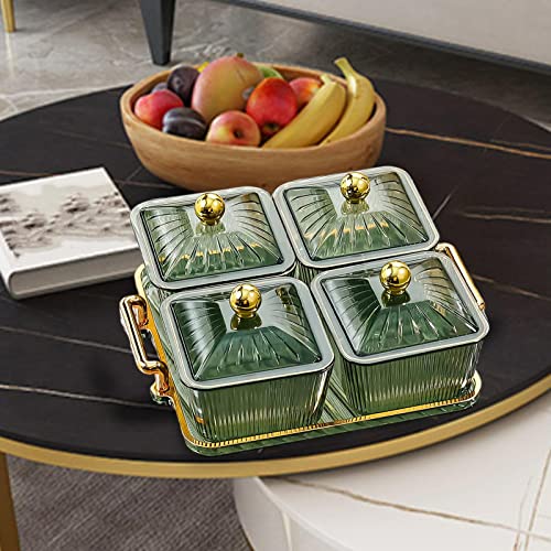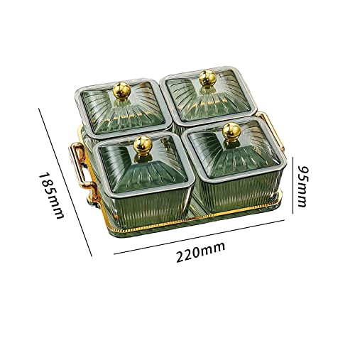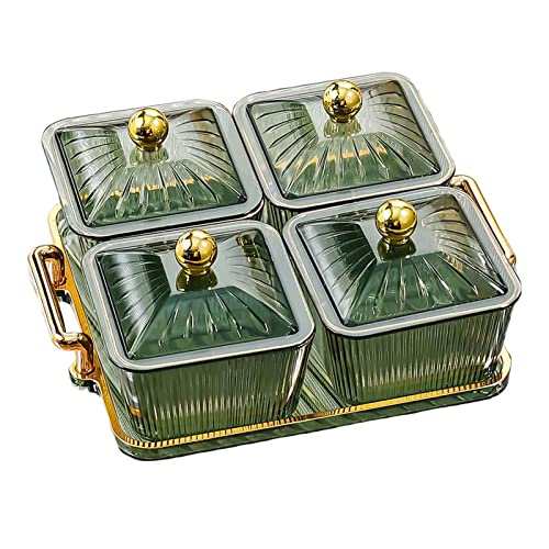 With Lid: Dried fruit plate appetizer serving tray with lid, dustproof, equipped with a tray and handle, easy to move.