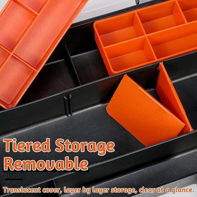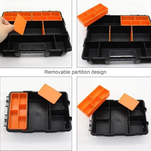 ★High Capacity Storage: The double side toolbox is suitable for storing various parts, fasteners, screws, nuts, bolts, electrical connectors, hair accessories, beads, fishing tackles and various other smaller construction items.