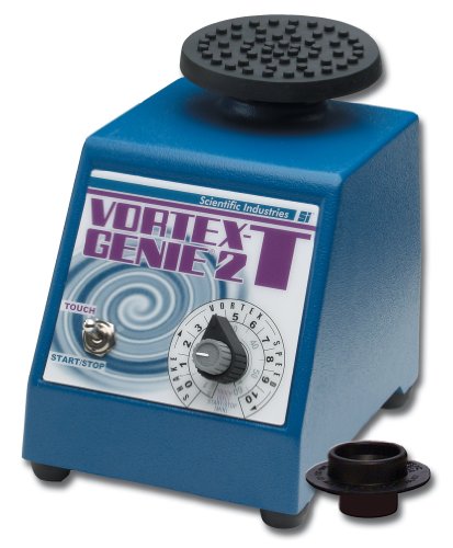 Vortex shakers mix small amounts of liquid in laboratory containers for biochemical, microbiological, and other applications. A vortex shaker can be analog or digital and is commonly an automated, electrically powered, benchtop unit with a base that holds a rubber cup or a platform that spins off center. The user places a test tube, beaker, or other small vessel of liquid onto the spinning cup or platform, creating a vortex to mix the liquid. Some models can hold multiple containers, often by an accessory attached to the base. Additional features may include fixed or variable speeds, touch or hands-free operation, and various voltages.