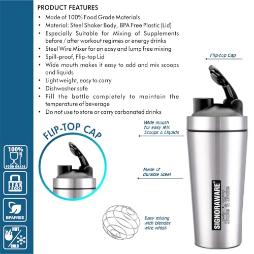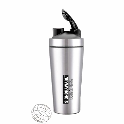 Premium Protein Shaker Bottle Steel: Signoraware Steel Shaker Sports and Gym Water Shaker Bottle Is Exclusively For Work Out Regimens That Include Supplements; Before And/or After A Work Out.