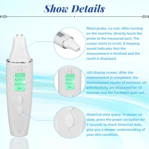 【Intelligent Alerts】 – This unique corneometer skin hydration meter offers intelligent reminders to ensure your skin is always at its best. It notifies you when your skin is too dry and needs hydration, or when its hydration and oil are saturated, helping you maintain the balance.