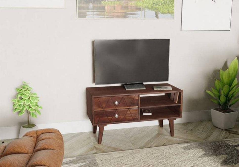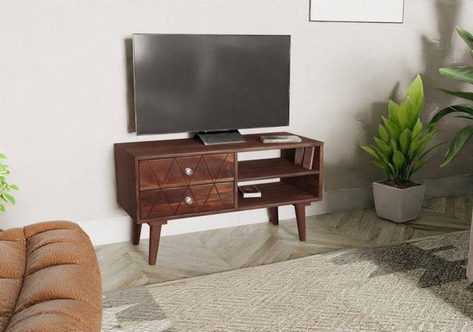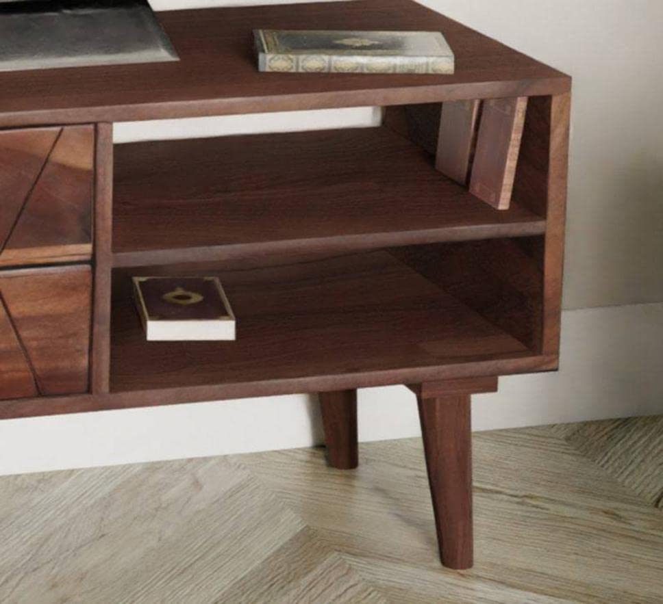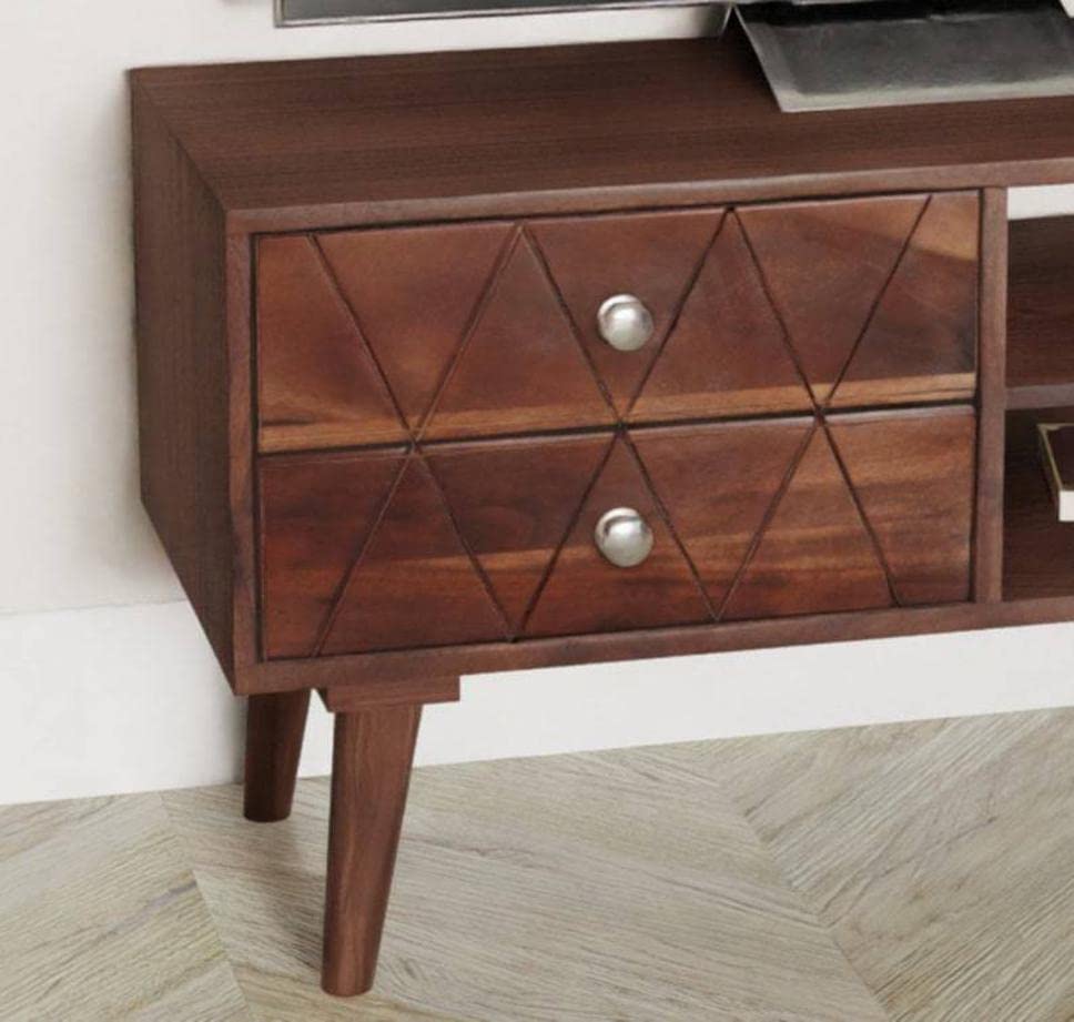 SMAART CRAAFTS LONDON TVC helps to improve your living room with a TV Stand for you to have a place for your media essentials or décor, whether in your living room or bedroom. Its top is made of acacia wood in a warm mahogany finish in a soft edged rectangular shape. The top shelf can serve as a tv stand while two drawers and two open shelves are perfect to keep your entertainment center clutter-free. Criss cross design on drawers with round wooden legs gives it a flared design attracting the look of your living space. Natural Variation: The color, finish, wood grain, and knots may vary due to natural and artificial factors. AUM INC. is the leading manufacturing and export houses from Jodhpur, Rajasthan, India which employs over 300 skilled and semi skilled artisans who create and deliver outstanding products on a daily basis. With a vision to become the ultimate powerhouse of this Industry, we have been exporting to more than 12 countries and growing on year to year basis. The success mantra of our substantial growth is very simple “DISCIPLINE”. We respect following some disciplines for each and very product and each and every buyer : 1. Material is sourced ethically along with all channel documents. Raw wood is completely treated and seasoned to make sure it is free from bugs and termite. 2. Finishing material is completely lab tested. We make sure it is Lead and Phthalate free in order to ensure customer safety. 3. Our products are packed safely following international guidelines of ISTA 3A. 4. Provide our workforce a home like environment with complete safety as per industry standards, because they are the real hero of our achievements. Feel free and safe when you order any furniture or décor products from SMAART CRAAFTS.