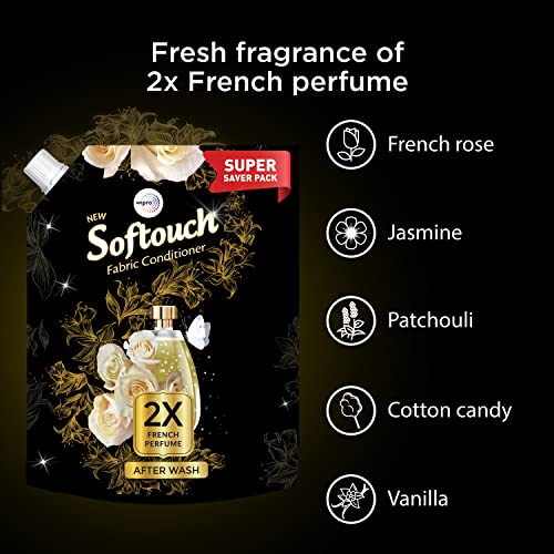 BURST OF FRENCH PERFUME FRAGRANCE: 2X French Perfume in Softouch Fabric Conditioner has French rose, jasmine, patchouli, and vanilla notes to keep your clothes fragrant