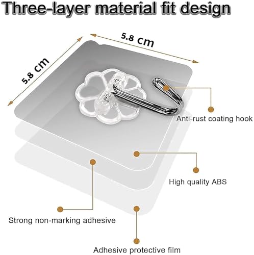 {PERFECT APPEARANCE} The hooks unique transparent design makes it almost undetectable, perfect for indoor and outdoor decorative applications! Especially suitable for hanging shower or bath accessories in the bathroom or for hanging kitchen utensils and tools on a tiled backsplash!