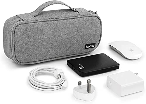 ELECTRONIC ORGANIZER BAG : Made of easily operates high quality zipper / durable, scratch-resistant and easy-to-clean waterproof nylon. Free to hold your large power charger, USB/Lightening power cables, bluetooth headest , mouse and small in ear headphones together. Works well for trip.