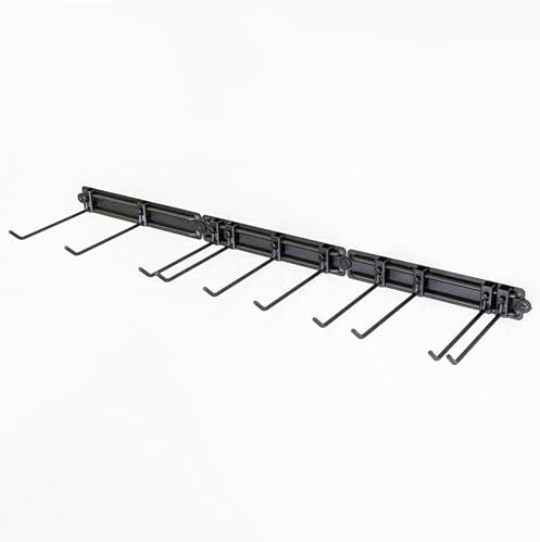 ADJUSTABLE GARAGE STORAGE RACK: Optimize space with these tool organizers and storage hooks. Customizable wall track system fits shovels, rakes, brooms, mops, power equipment, chairs, and much more.