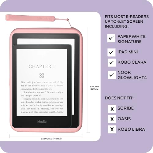 Versatile Design: Perfectly fits 6” Kindles, Kobos & Nooks, 6.8” Paperwhite, iPad Mini 6, and other e-readers less than 200mm x 140mm. Also ideal for carrying phones, keys, and small essentials.Does not fit the Kindle Oasis and Kobo Libra.