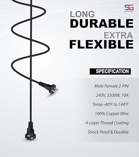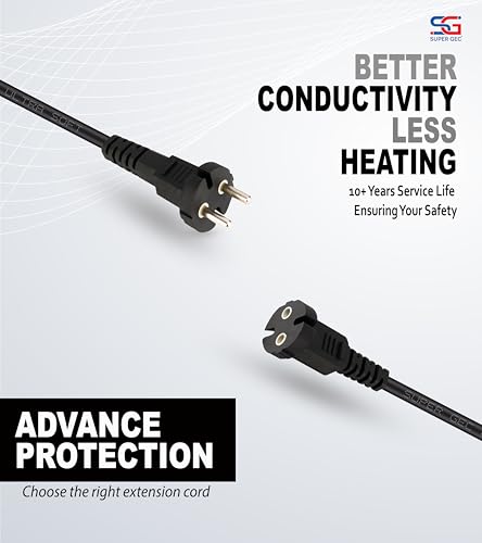 High-Conductivity Copper Wires: Featuring pure copper conductors, the Super GEC Extension Cord offers superior conductivity and minimizes power loss, ensuring your devices receive a stable and efficient power supply.