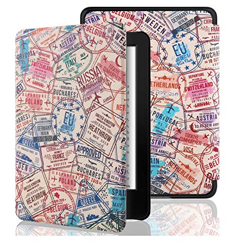 SwooK Classic Printed Magnetic Flip Cover Case for All New Kindle 10th Generation 2019 Release Model: J9G29R Flip Case Smart Folio Cover Case (Not for 10th Gen 2018 Kindle) (World Stamps)