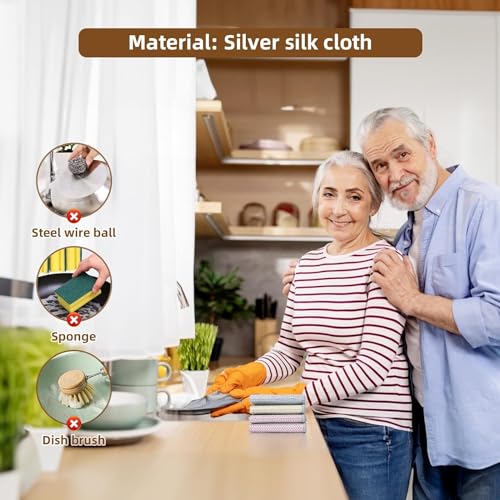 ✅【Quality Material】This Wire Dishwashing Rags is made of high quality fabric and silver wire mesh. It is durable and not easily broken. The size is 7.87*7.87inch and it can be used repeatedly without losing the effect.