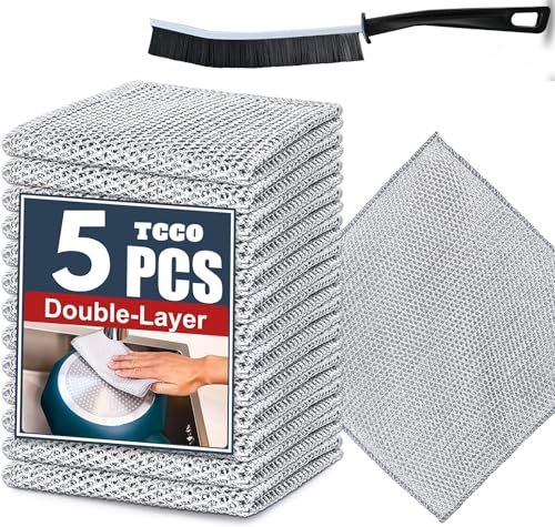 ✅【5 Pcs New Upgrade Steel Wire Dishwashing Rag & Gaps Cleaning Brush for Wet and Dry, No Scratches and No Odor, Reusable and Washable for Cookware, Sinks, Dishes, Stove Tops】