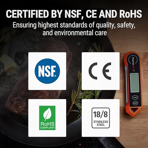 3-4 seconds ultra fast response time with highly accurate to ±0.9, instant read meat thermometer features 4.3 inches food grade stainless steel probe, suitable for measure any type of food temp with the cooking thermometer