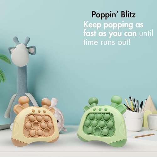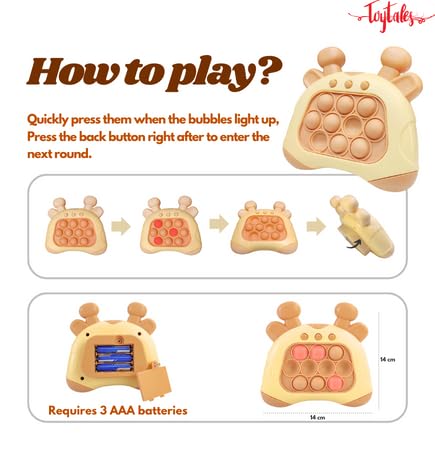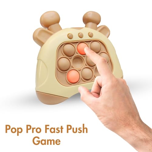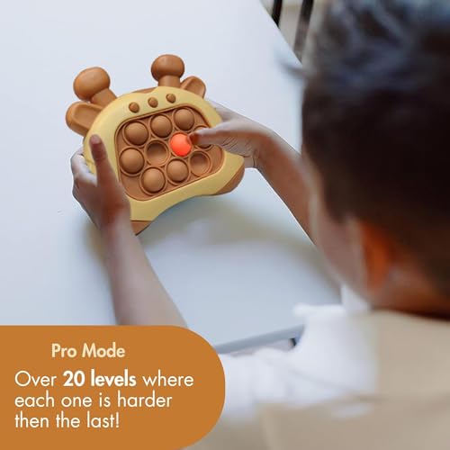 SLEEK GAME CONSOLE DESIGN: The latest console design makes this light-up puzzle toy even more exciting and it catches real time response. With addictive bubble-bursting classics combined with bright, colorful video games, the player pops all the light-up bubbles before time runs out, then presses the big button on the back to reset them.