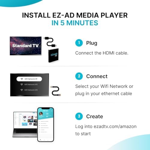 AUTO CONTENT UPDATES: Plug our EZ-AD media player into any HD Television and start showcasing product advertisements & videos instantly. Content updates wirelessly from our cloud-based website.