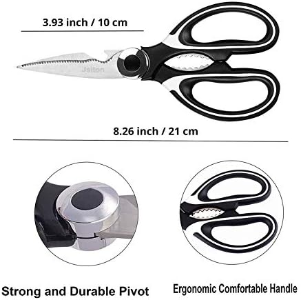 JSITON Multifunctional Kitchen ScissorsTips:Please keep the kitchen scissors out of the reach of children.The blades are sharp, please be careful to use.Please do not soak in water for a long time.ATTENTION:Please wipe with a dry towel after use or washing.