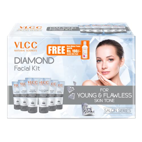 VLCC Diamond Facial Kit with FREE Rose Water Toner – 300g + 100ml | Skin Purifying Facial with Colloidal Diamond, Jojoba Oil, Olive Oil & Aloe Vera. Detoxifying At Home Facial.