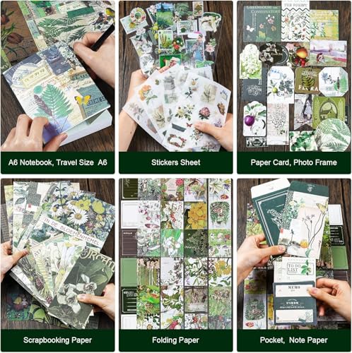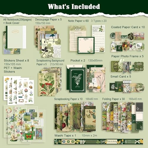 Design your own scrapbook, junk journal, bullet journal, planner, or diary with our versatile washi tapes, scrapbook stickers, and decorative paper. The 256-page A6 grid notebook holds all your ideas, plans, and daily experiences. Use the decorative paper for crafts, gift wrapping, and more. The included cards are perfect for card making, bookmarks, and gift decoration.