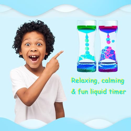 EXCITING SENSORY TOYS: The slow and rhythmic drops of this liquid hourglass timer have a very soothing effect, they are very charming and fascinating to watch, can stimulate sensory play for calming relaxation, actually help kids and adults with sensory issues, making this a perfect sensory toys for kids with special needs, autism, and ADHD.