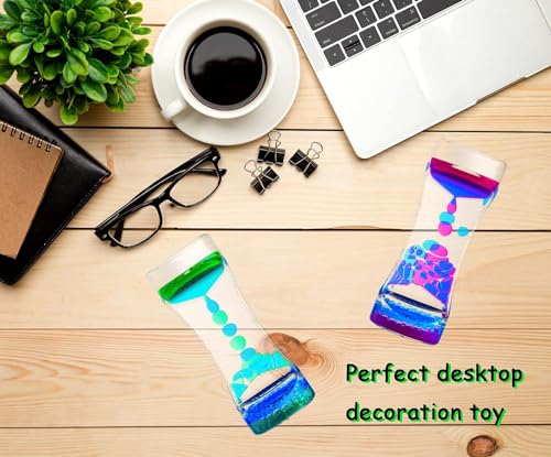 COLORFUL SENSORY TOYS: Each liquid motion bubbler timer contains two colors inside,Blue Pink and Blue Green,When they coincide, a third color will appear, giving you a different sensory experience! Great for an office desk space, bedroom, or even as a reminder when brushing your teeth, the soothing colors remind you to slow down, relax, and enjoy each moment, each with their own unique colors inside!