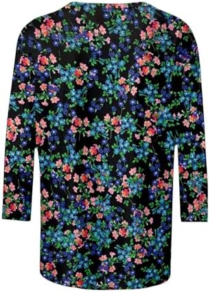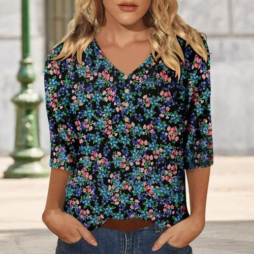 Womens Tops 3/4 Sleeve V Neck T Shirts Button Down Summer Casual Loose Fit Tunic Tops Business Work Tee