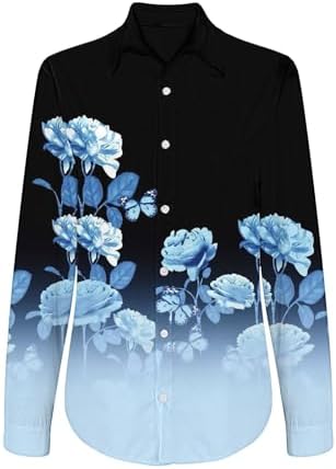 Women’s V Neck Floral Print Roll Up Long Sleeve Button Down Shirts Trendy Summer Tops Loose Casual Ladies Lapel Shirts