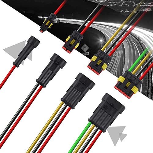 WIDE APPLICATION: These 1 2 3 4 way waterproof automotive electrical connectors are compatible with 22-16 AWG wires, great for motorcycle, truck, marine, jet ski, scooter, car, boat, Riding Mower, various 12v connectors of ATV, bass boat, road trucks and other wire connection.